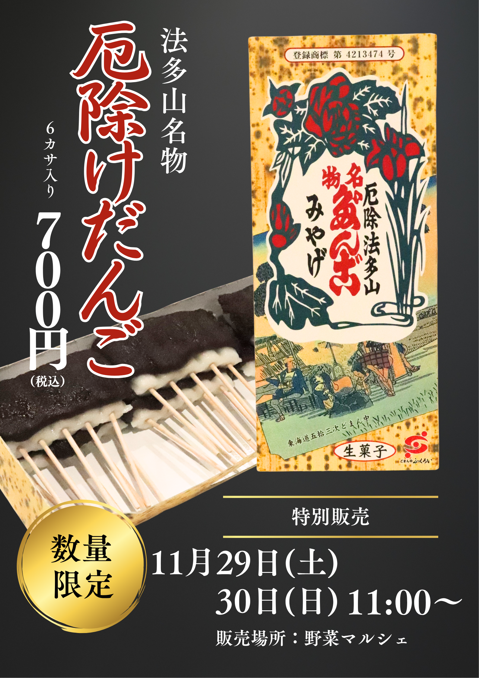 前月のイベント次月のイベント2025年11月のイベント全てイベント毎週木曜日【毎週木曜日開催】もくよう!ごきげんマルシェイベント11/22(土)~11/24(月)11/22(土)~24(月)カドデイベント一覧イベント11/24(月)KADODE chocolatesイベント11/29(土)~11/30(日)法多山厄除け団子特別販売