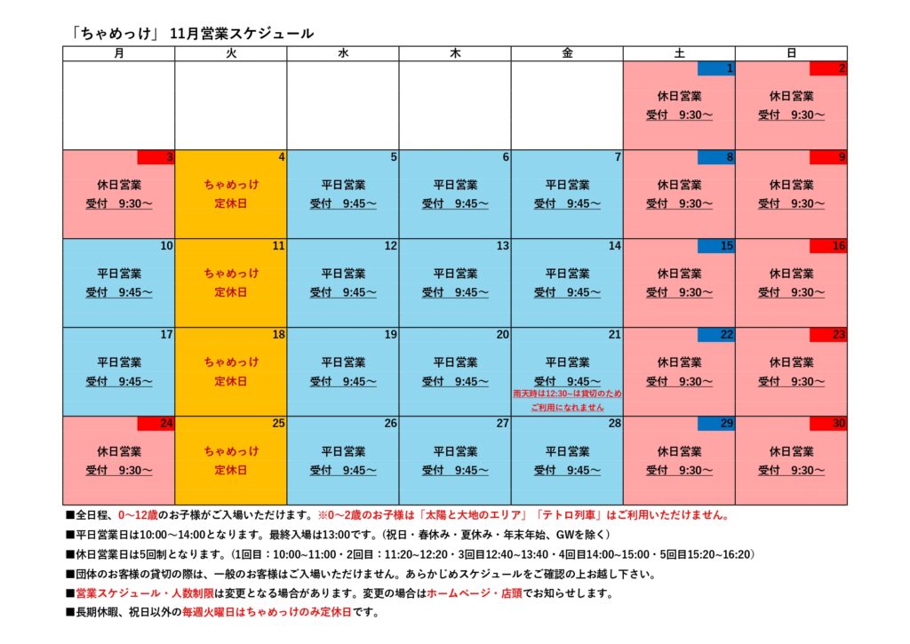キッズパークちゃめっけより11月の営業スケジュールをお知らせいたします。