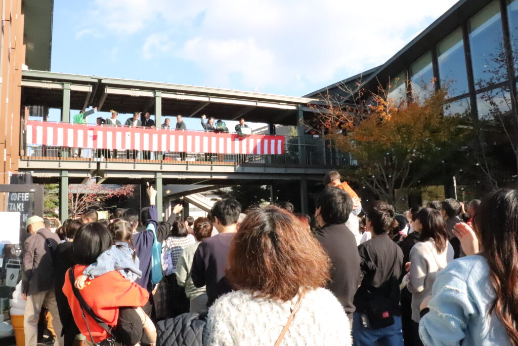 イベント広場では、メインイベント「お菓子まき」を実施。開始と同時にお子様から大人の方まで大盛り上がり!5周年を盛り上げる楽しい光景となりました。