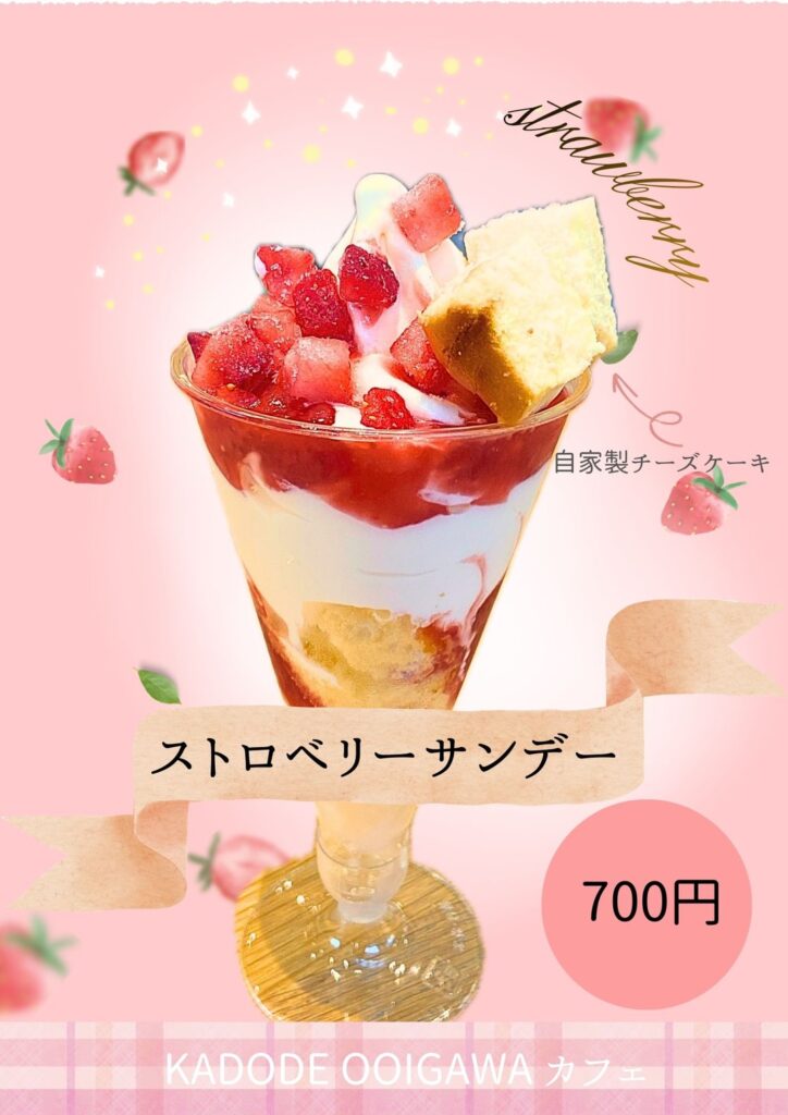 いつもKADODE OOIGAWAをご愛顧賜り、誠にありがとうございます。KADODE OOIGAWAカフェでは、旬の苺を使用した新作スイーツの販売をスタートしました。苺の甘酸っぱさを楽しめる2品をご用意しています。