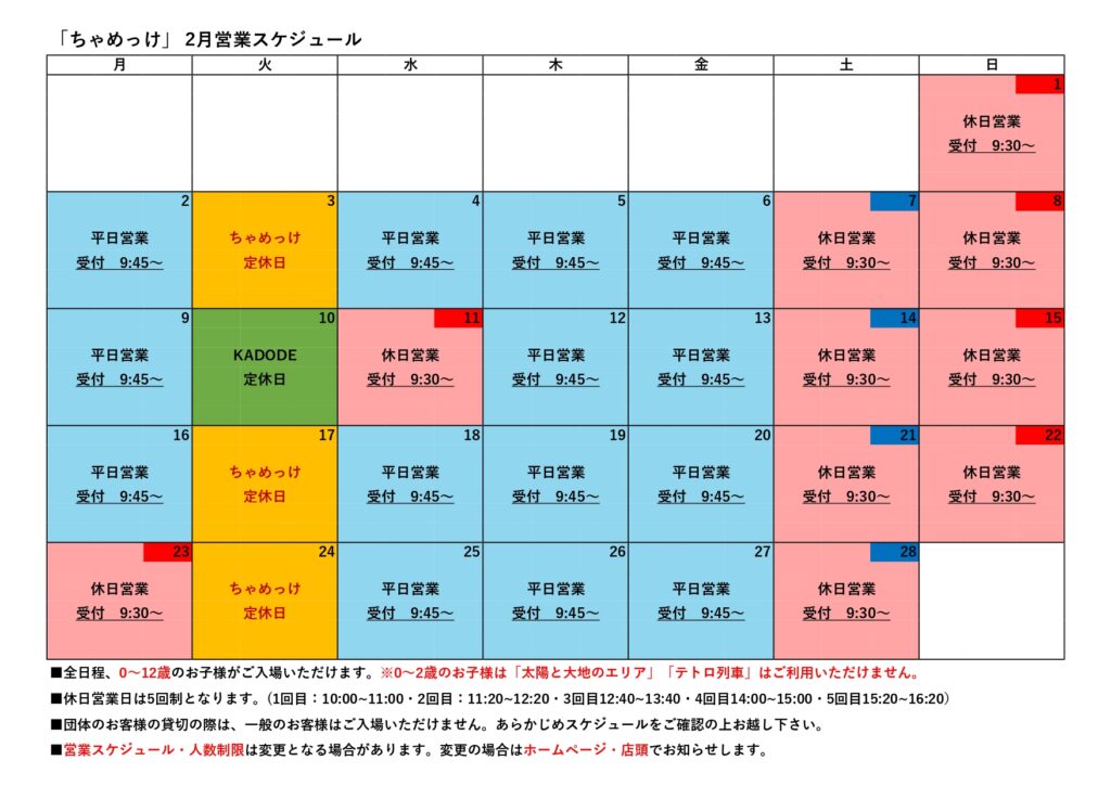 キッズパークちゃめっけより2月の営業スケジュールをお知らせいたします。